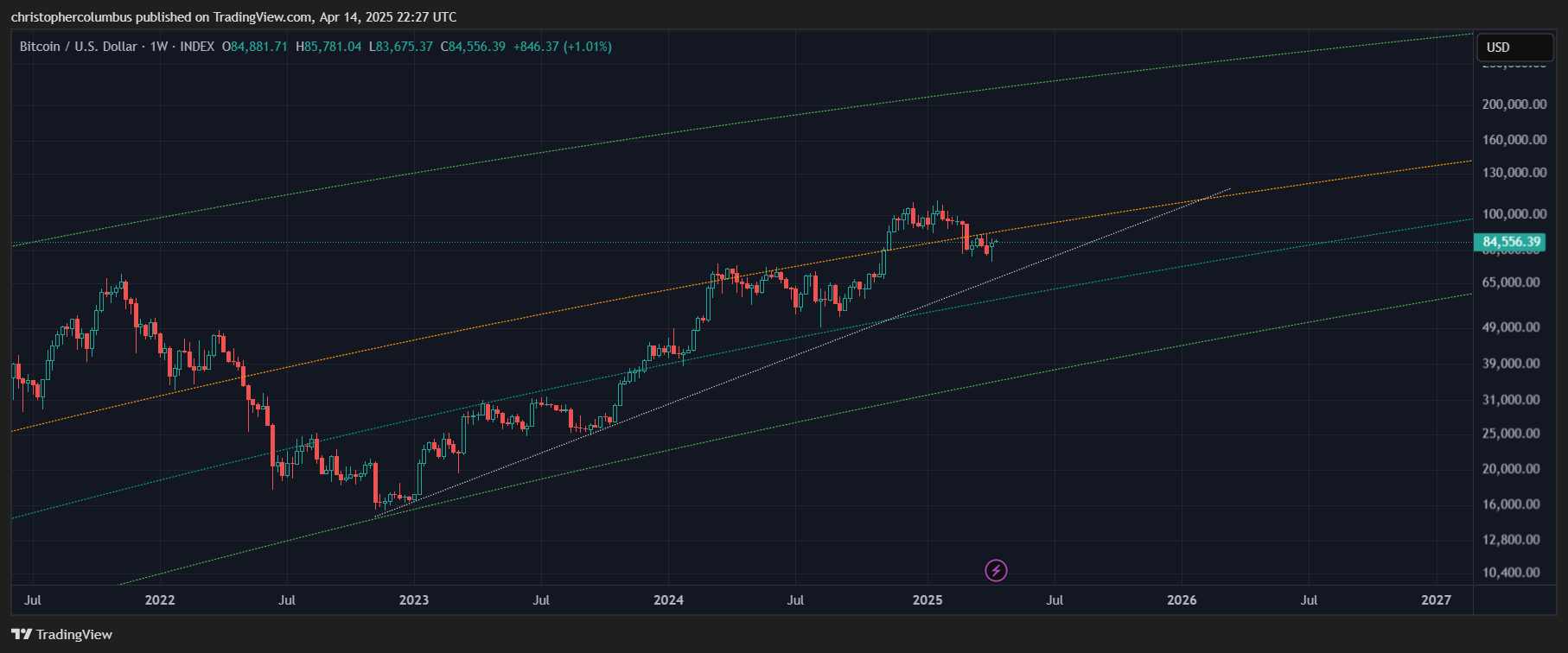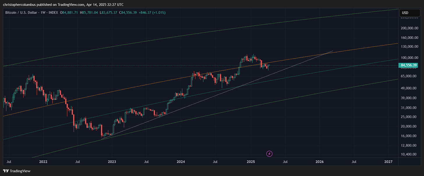 The year rolls on, and so does the chart. Any objective observer of the chart, unfamiliar with the market and not being caught up in it, will no doubt wonder what the panic is regarding price [yes, people can be emotionally detached toward Bitcoin]. Their initial impression of the chart would be a visual one, seeing a regular series of moves and corrections, and they would most likely incline toward seeing the price currently at the end of yet another correction.